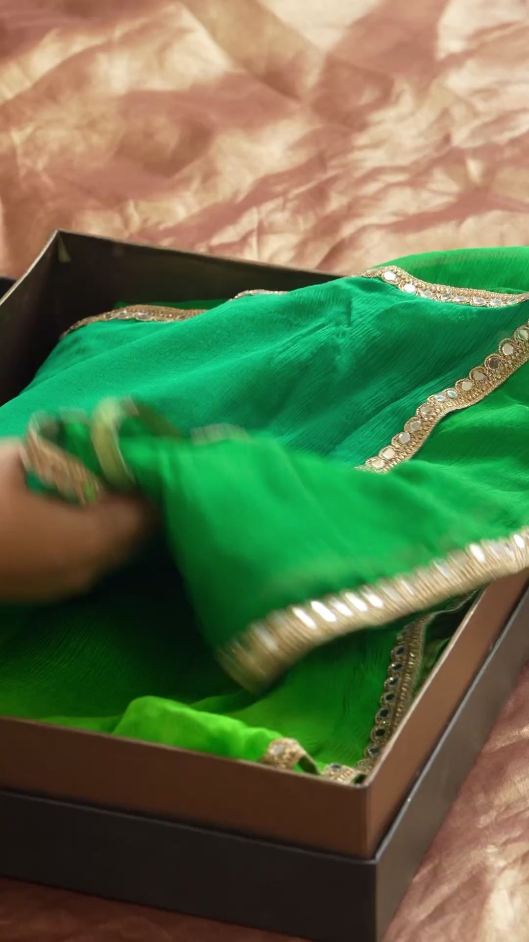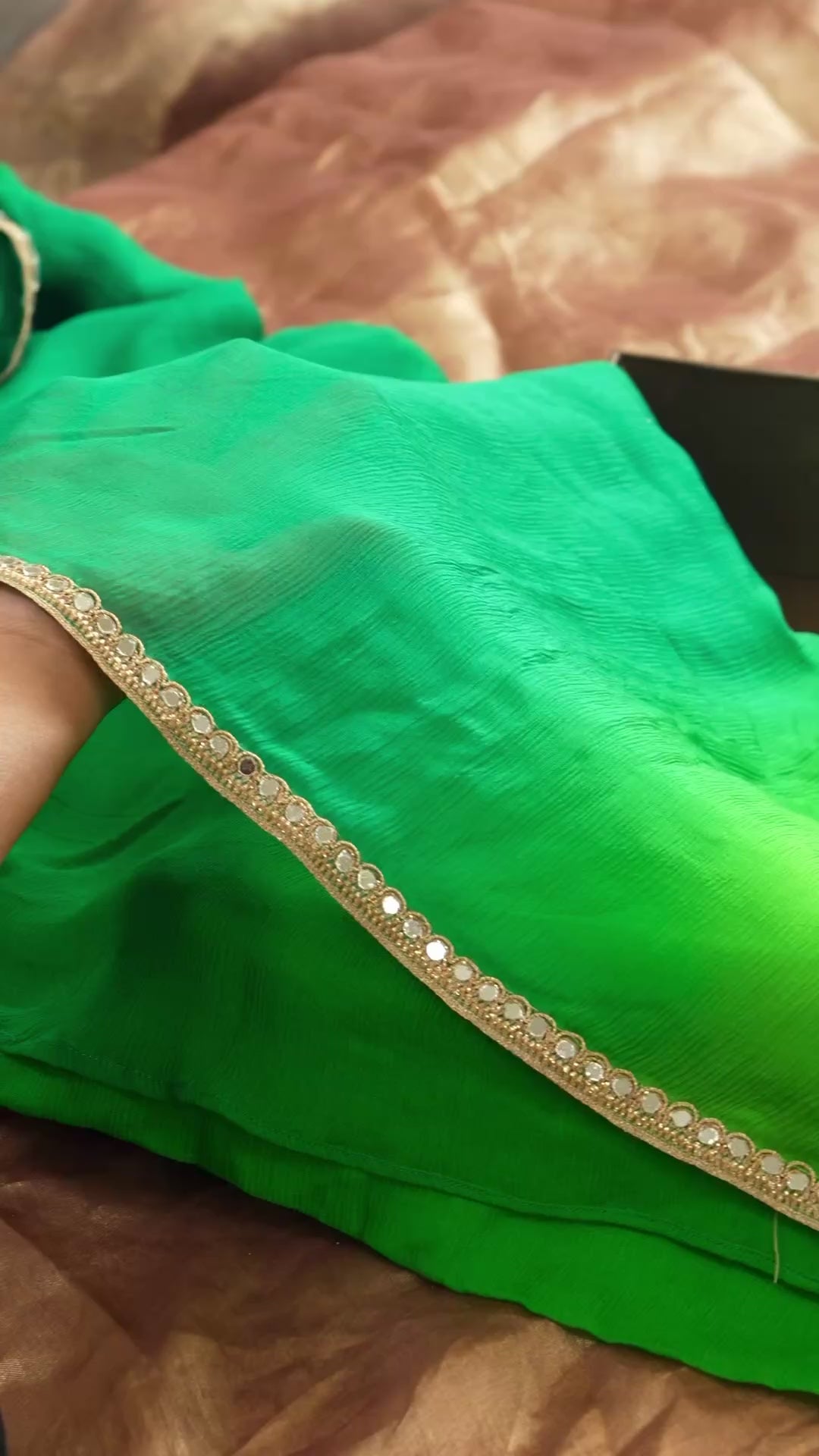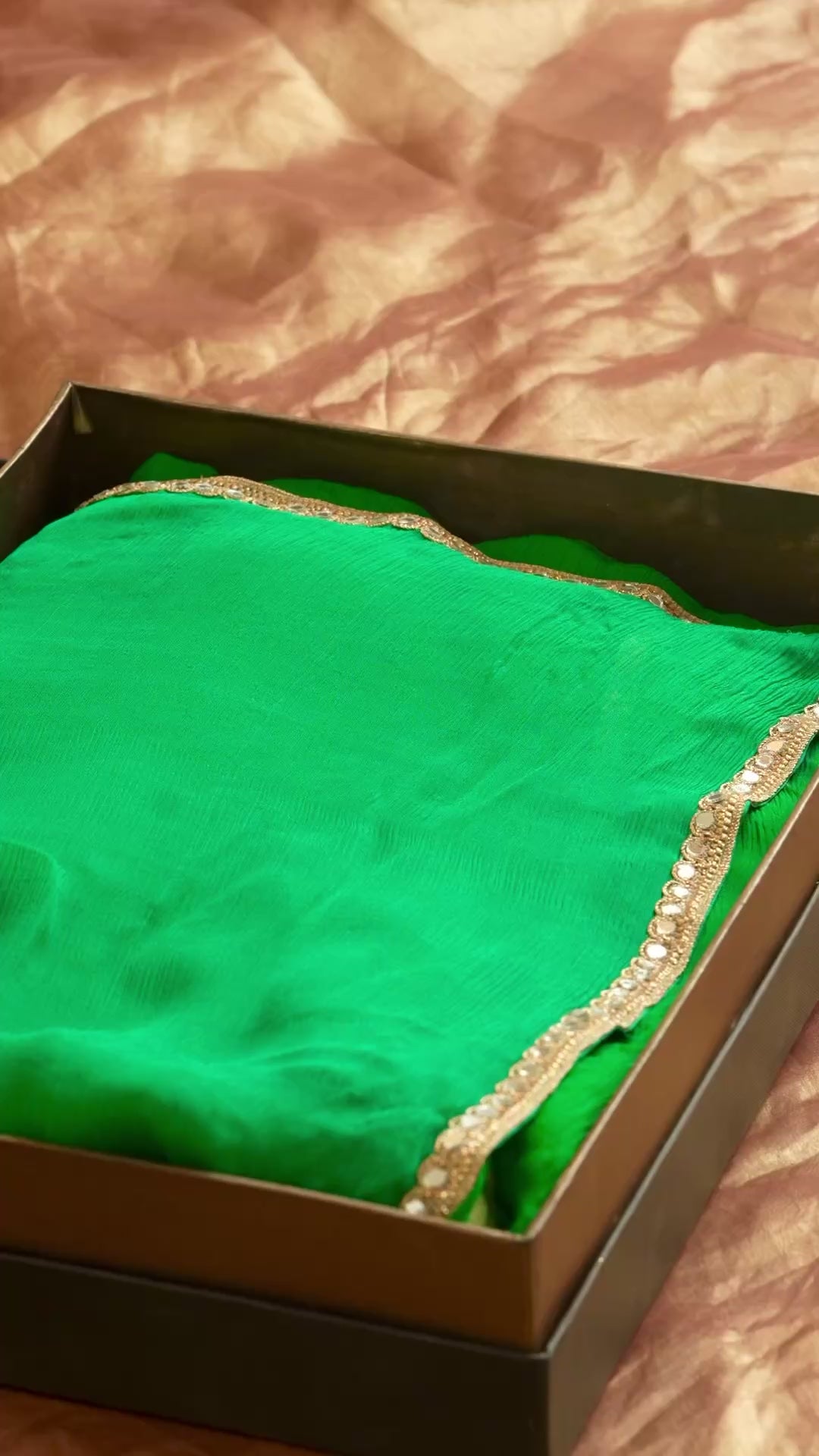 Amra: Green Pure Silk Chiffon Saree | Brocade Blouse