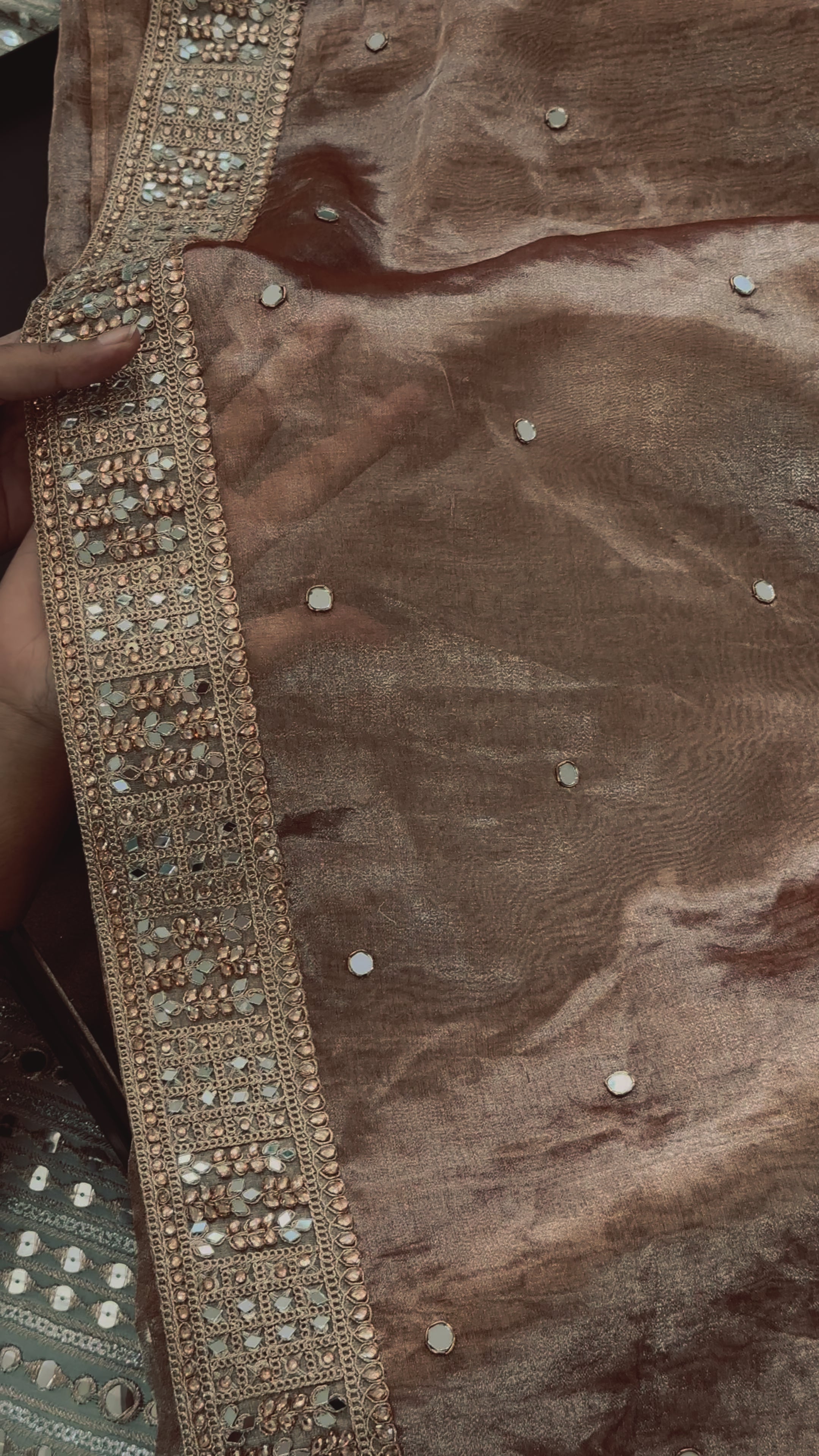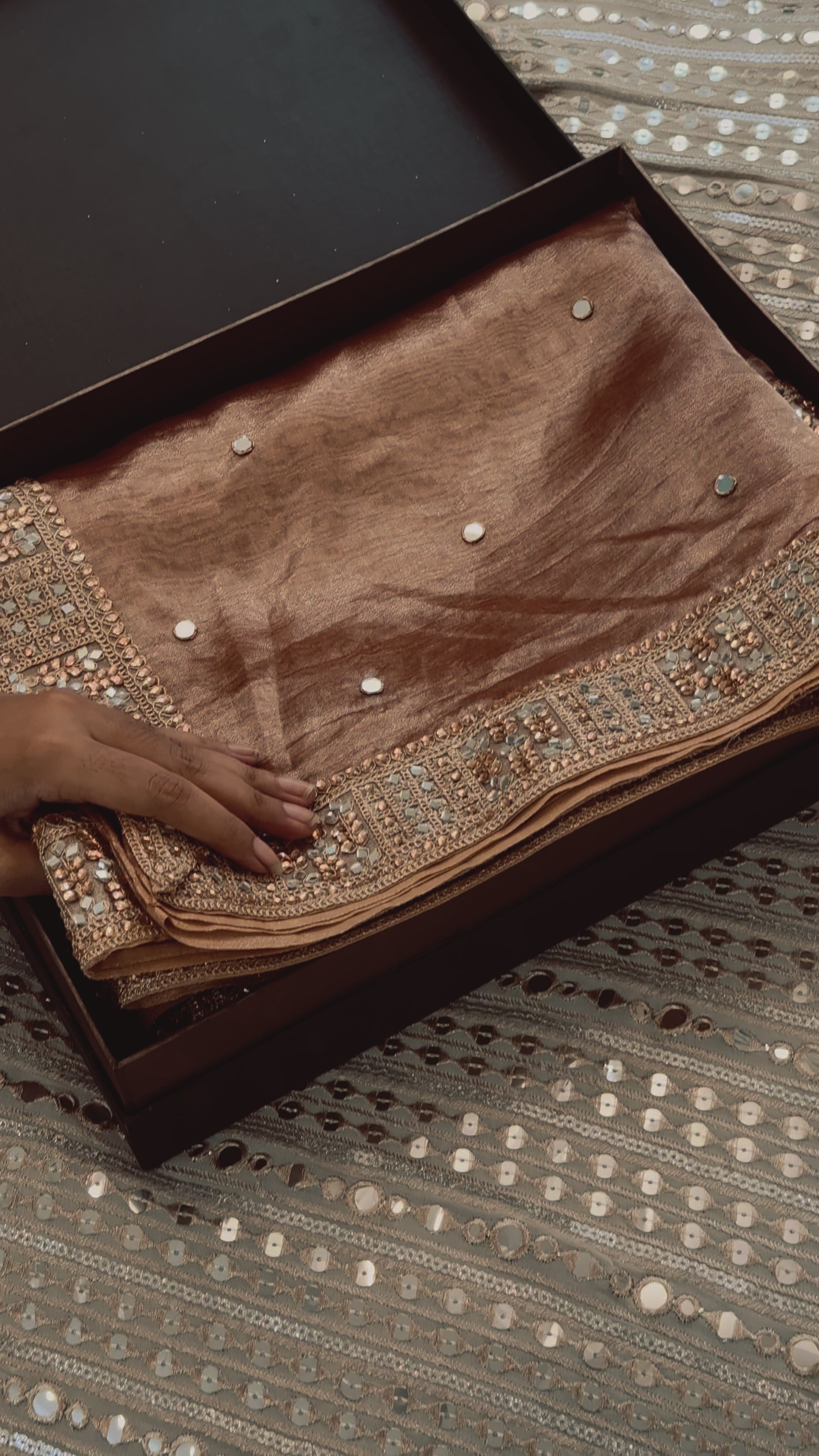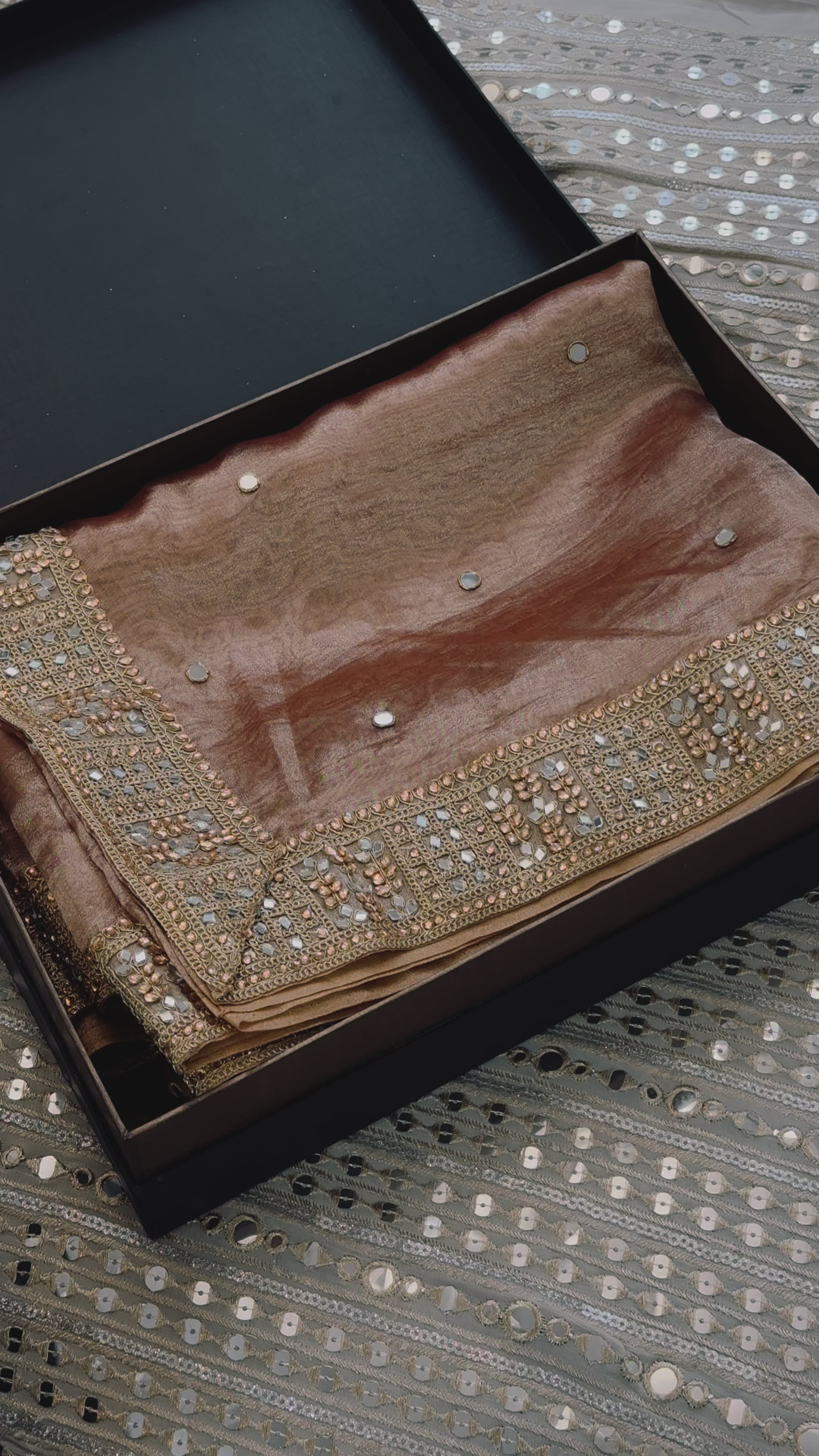Arabian Nights : Pure Silk Tissue saree with Handwork | Pure Silk Velvet Blouse with Luxury Handwork
