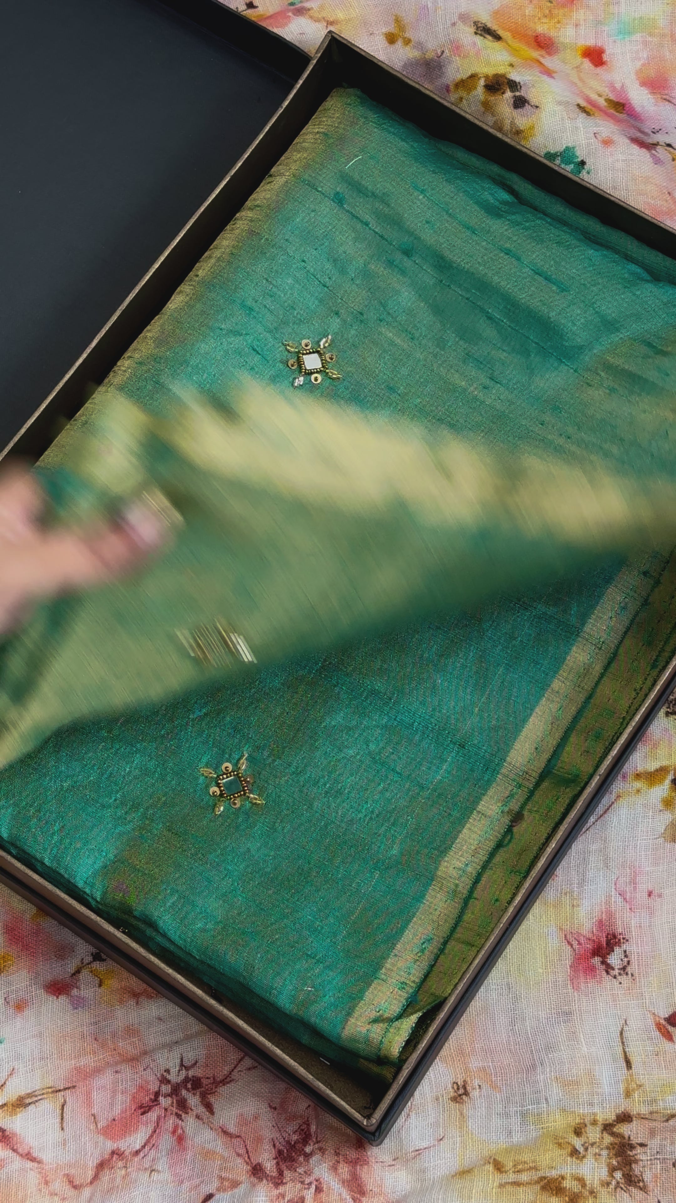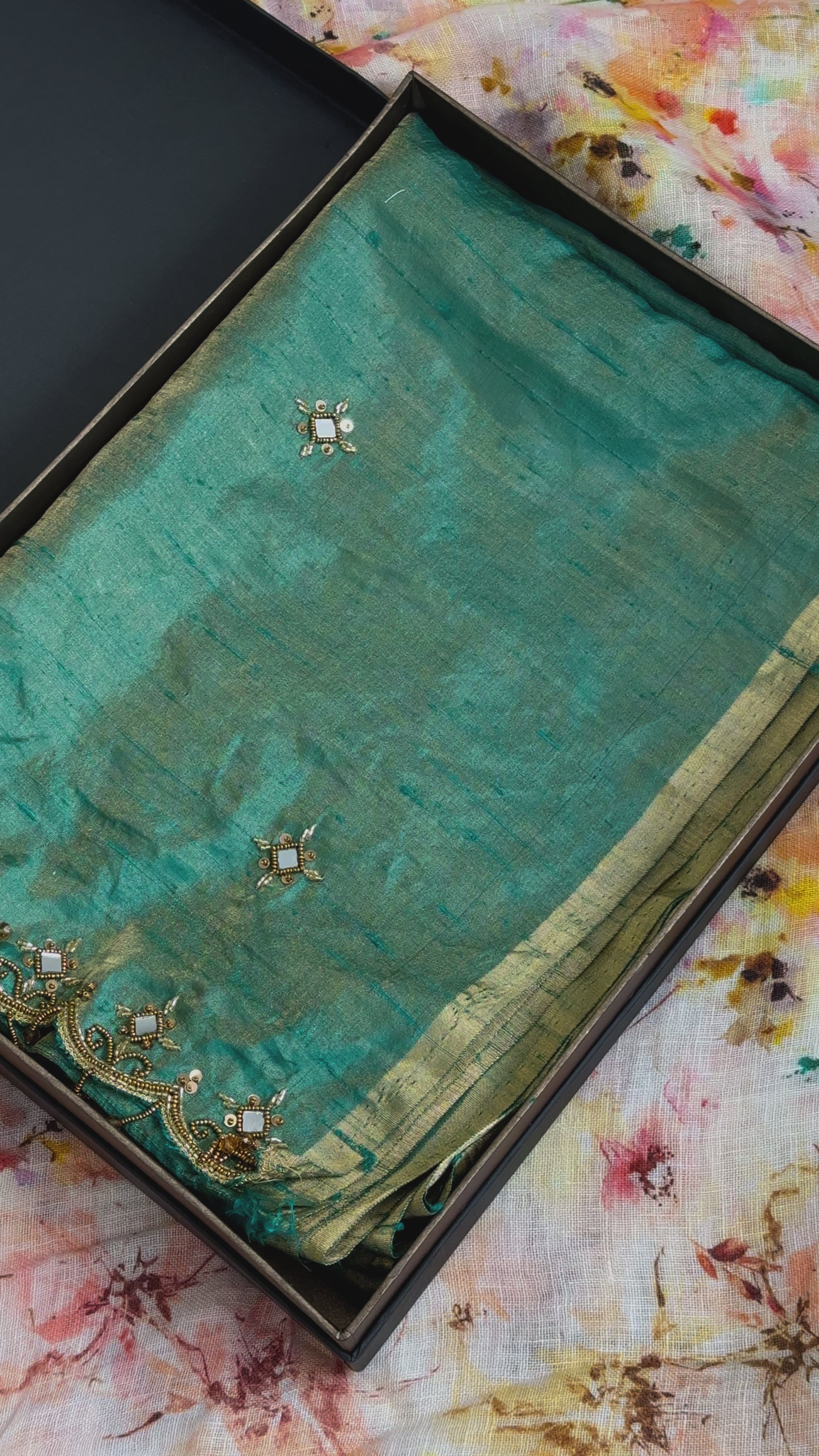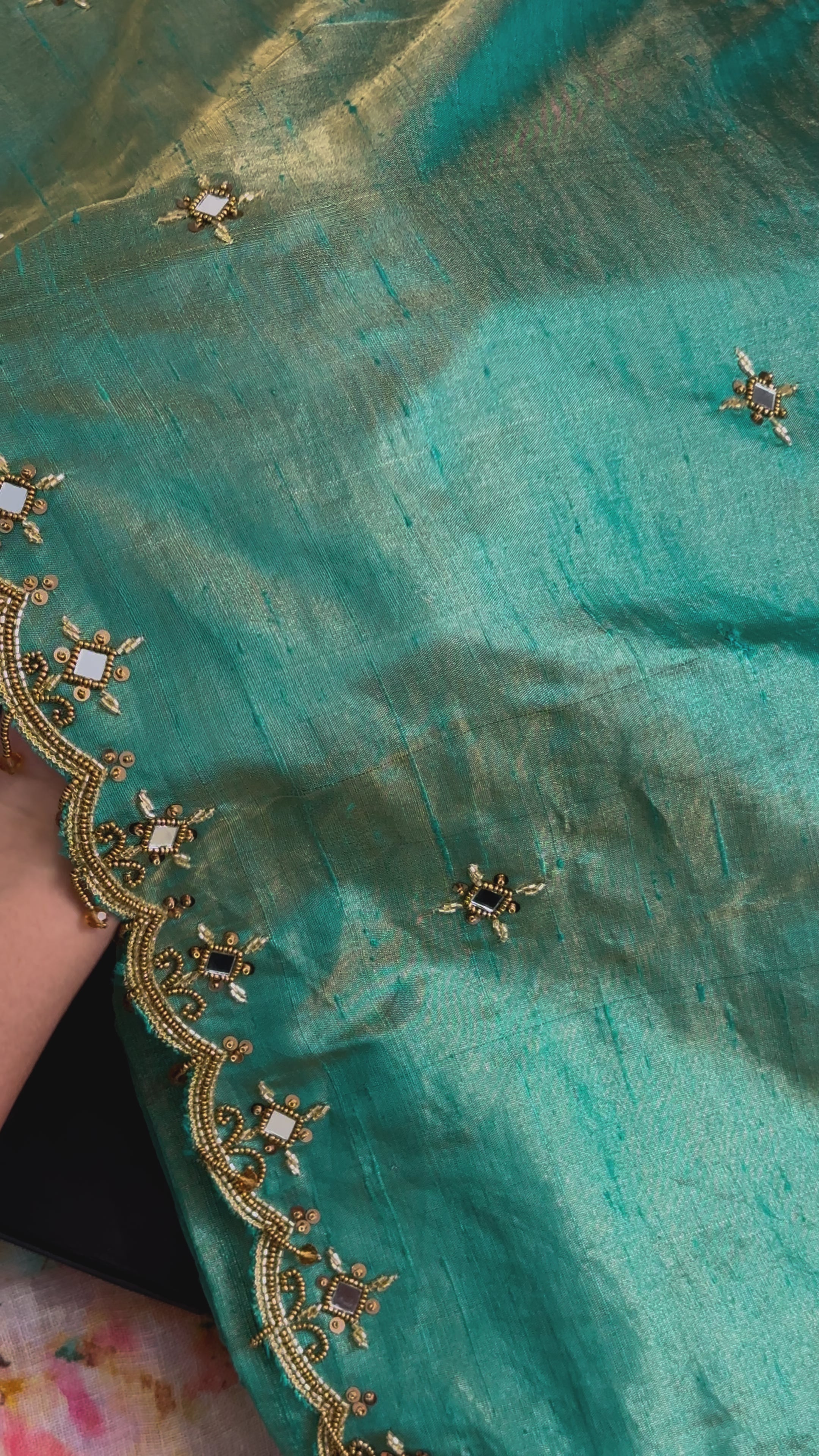 Saree: Pure Silk Dupion Tissue with handwork on body and pallu edges