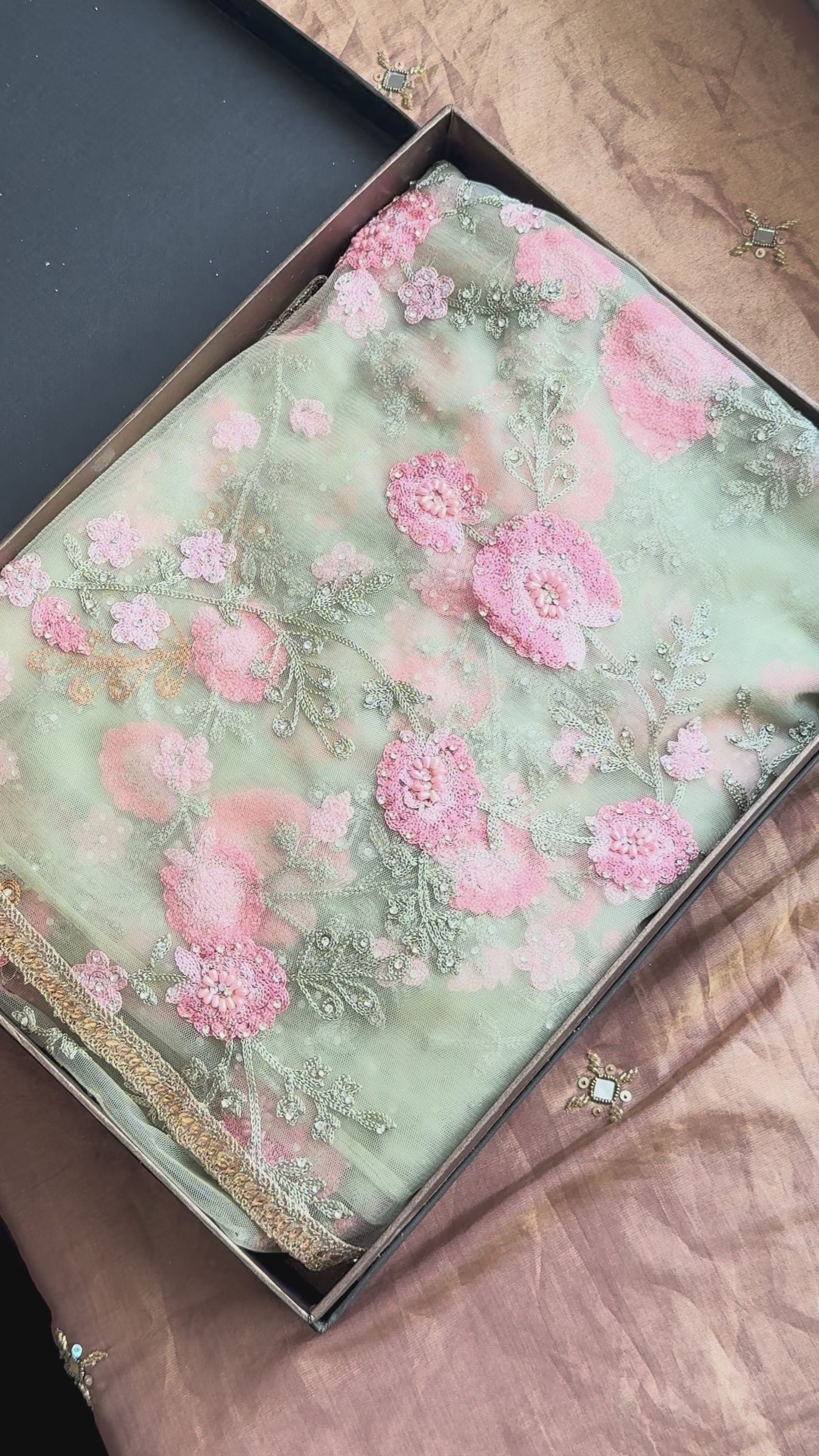 Rehana: Green Softnet Floral Embroidery Saree with Georgette Intricate work Blouse